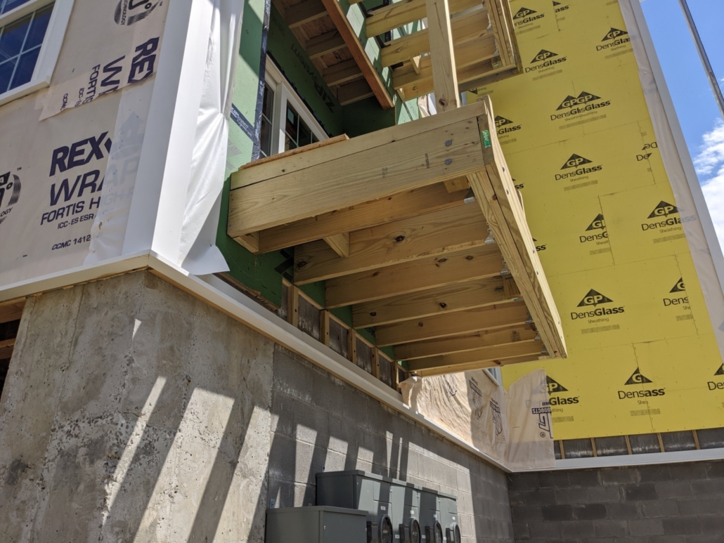 Balcony under construction on the side of a building