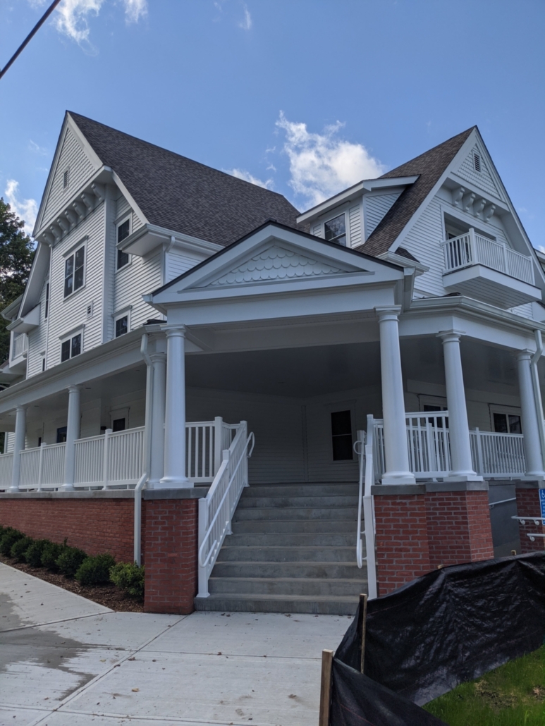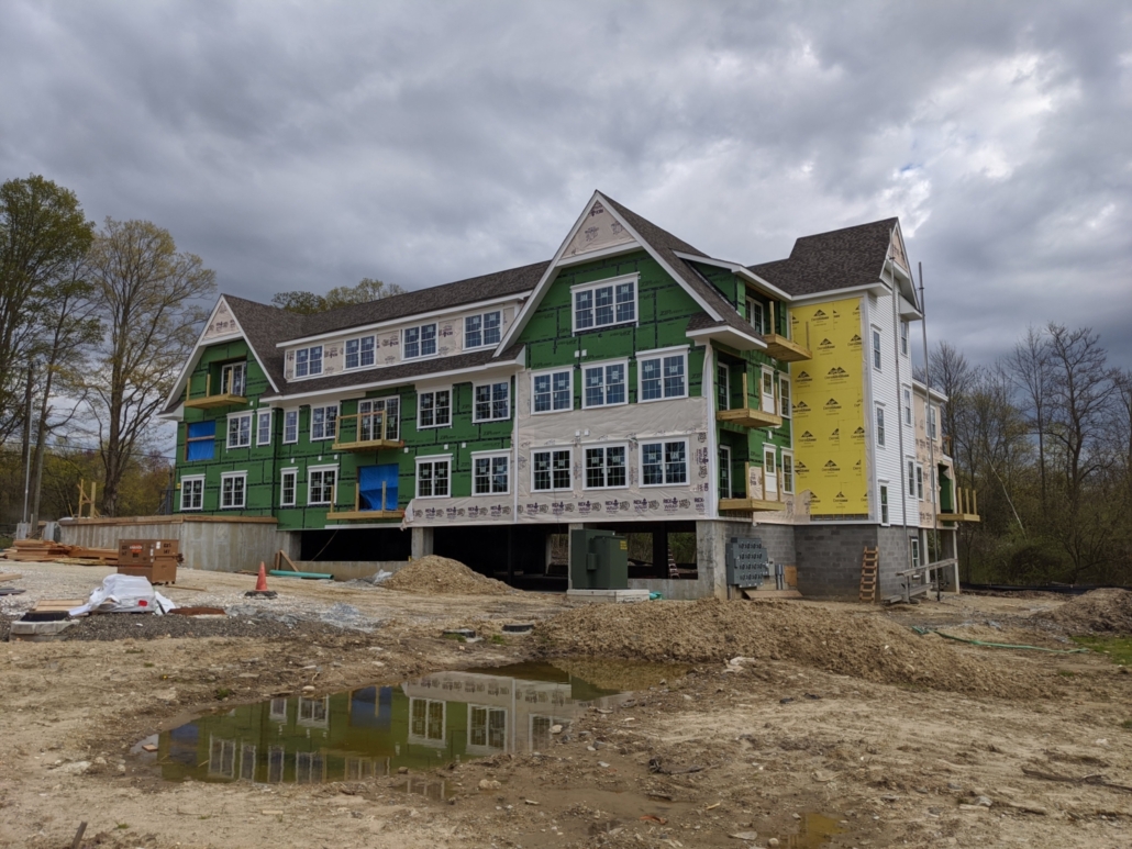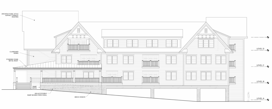 The building employs wood-framed floors and roof systems supported by load-bearing walls and strategically located steel members to accommodate large openings and circulation paths. Balconies and overhangs were engineered for both structural performance and aesthetic consistency with the architectural elevations. Additional considerations included lateral bracing, fire separation between units, and support for mechanical shafts and stair towers. The structure was designed to meet current building codes for multi-family residential construction while maintaining architectural features like clapboard siding, brick veneer, and standing seam roof accents. Conlon’s involvement helped deliver a practical and well-integrated structural system for this new residential community.