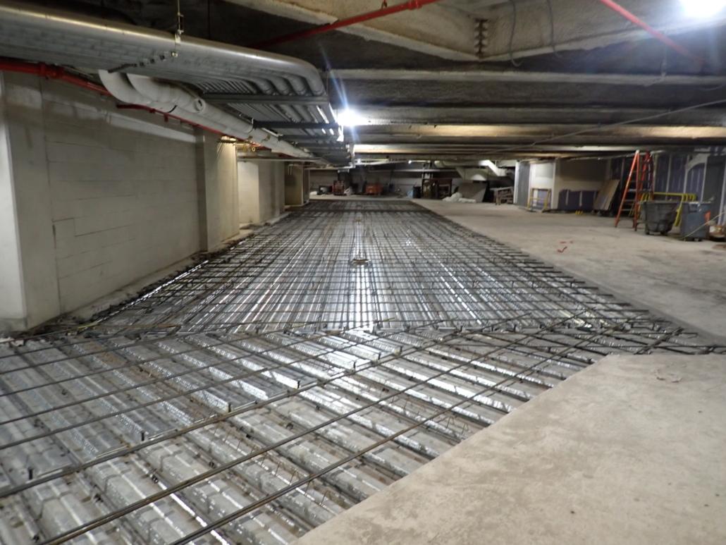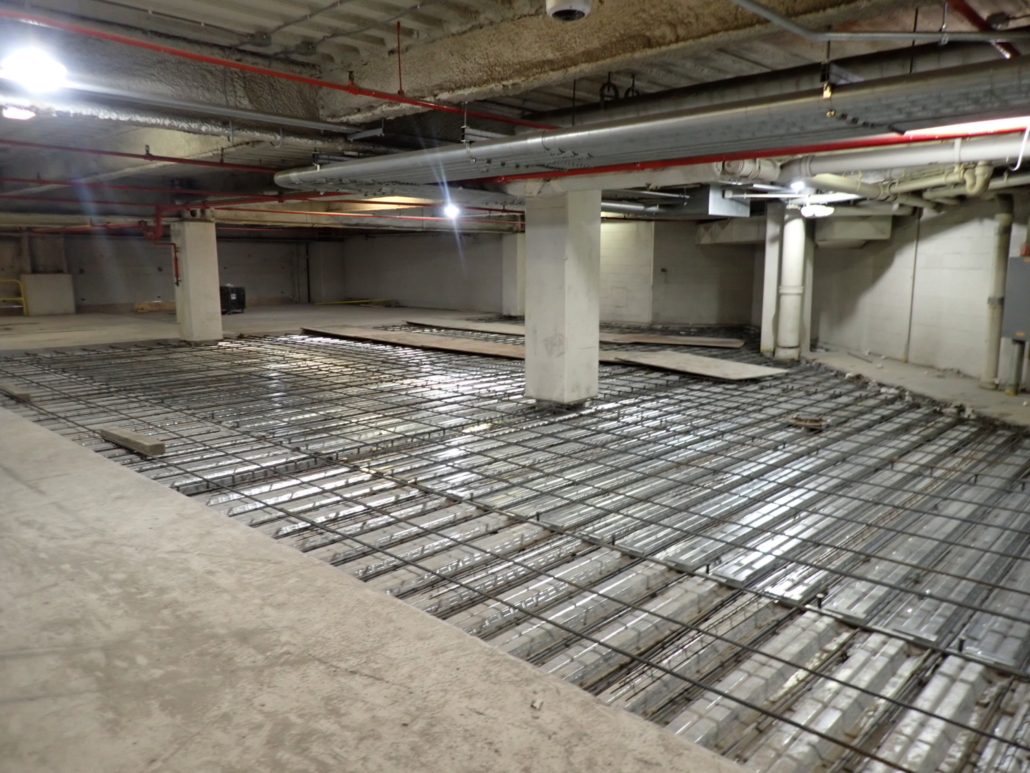 Parking Garage RepairGarage floor repair showing exposed rebar support